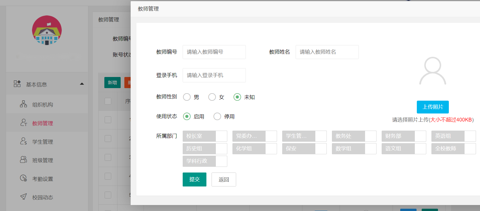 能對黌舍教員停止信息錄入,便利同一辦理和數據統計。