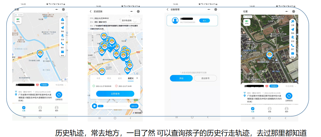 汗青點跡:入駐汗青點跡界面顯示,打開期限快速放置診斷汗青點跡未時,打開快速放置選定點跡診斷體例,全因素的準確定位查問,讓大人對對子女的監管更便利店。