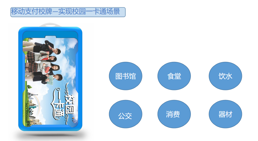NFC、RFID范疇兼容學生宿舍閘機消費鑒別、藏書樓消費借閱、水控消費花銷、商超小額貸款支付、高校食堂消費花銷。